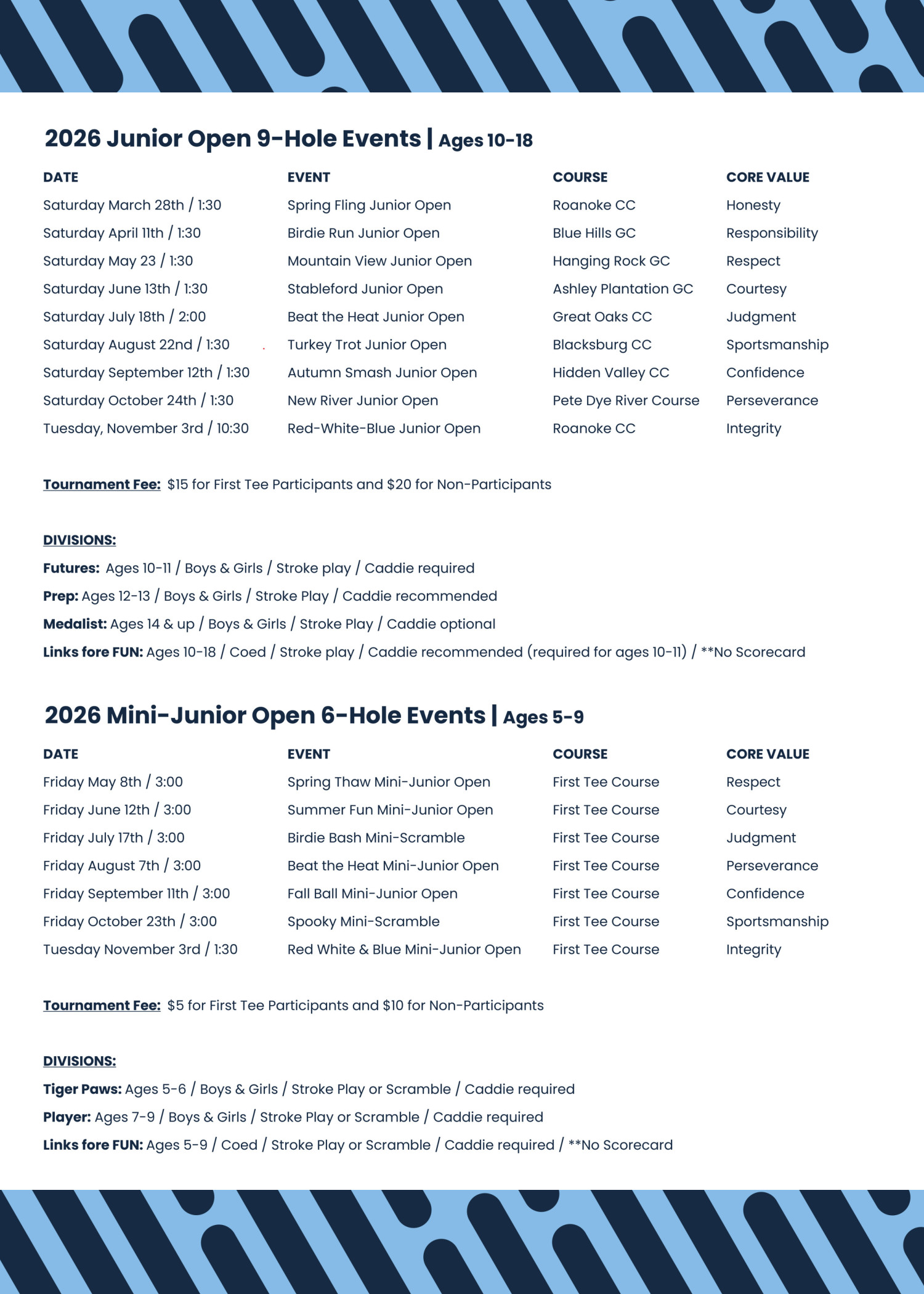 2026 Junior Open 9-Hole Events | Ages 10-18
